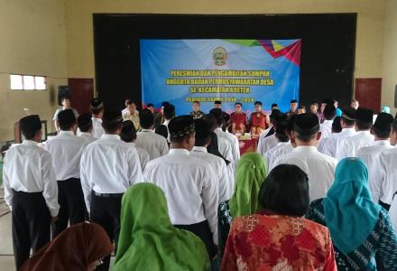 Prosesi peresmian ditandai dengan pengucapan sumpah janji di depan para tamu undangan dan tokoh masyarakat dari 5 desa serta anggota BPD lama yang dipandu oleh PLT Camat Kretek Heru Wismantoro. Sebelumnya dibacakan Surat Keputusan Bupati Tentang Pemberhentian Anggota BPD lama dan Pengangkatan Anggota BPD periode 2018-2024.