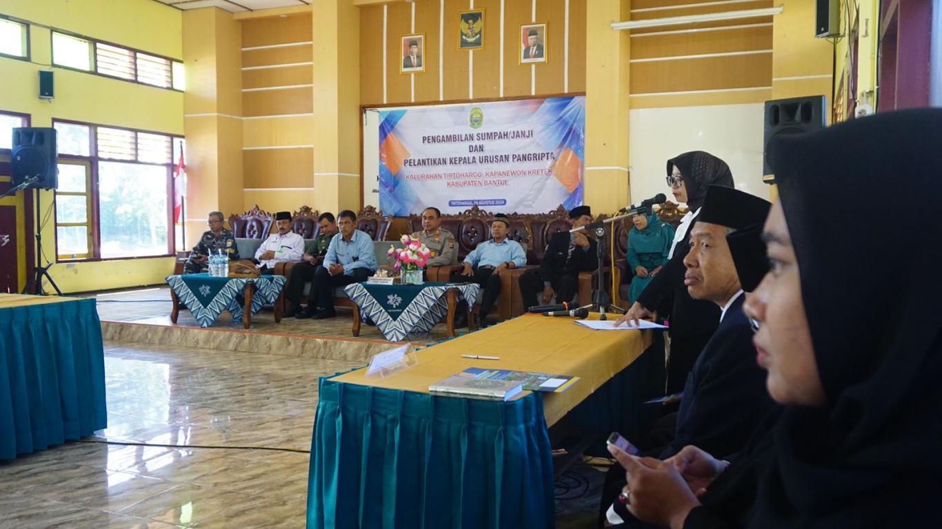 Tirtohargo - Selasa (20/8/2024) telah dilaksanakan acara pelantikan dan serah terima jabatan kaur Pangripta Kalurahan Tirtohargo di hadapan jajaran Forkompinkab Kapanewon Kretek. Acara tersebut dihadiri oleh Panewu, Danramil beserta jajarannya, Kapolsek, Bamuskal, LPMKal, serta berbagai tokoh masyarakat.